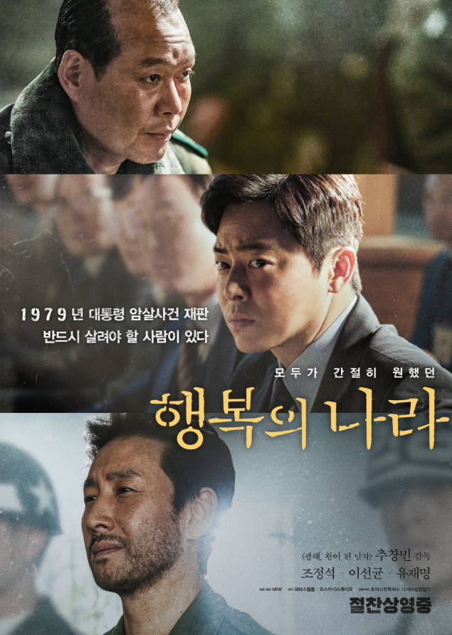 《행복의 나라》는 한국 현대사 속 어두운 전환점 속에서 정의와 인간의 선택을 성찰하게 하는 작품입니다. 뛰어난 배우들의 내면 연기와 치밀한 역사 재현을 통해, 권력과 도덕 사이의 딜레마를 경험할 수 있는 영화죠. 시나리오와 연출 스타일에 따라 호불호가 갈릴 수 있지만, 한국 정치 드라마 장르 팬이라면 깊은 여운과 역사적 의미를 함께 느낄 수 있는 작품입니다.