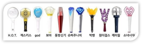 특징: 대규모 행사에서 한 눈에 볼 수 있도록 설계되어 있으며, 특히 팬들의 일체감을 강조합니다. 팬들이 동시에 야광봉을 흔들 때 강력한 시각적 효과를 창출합니다.